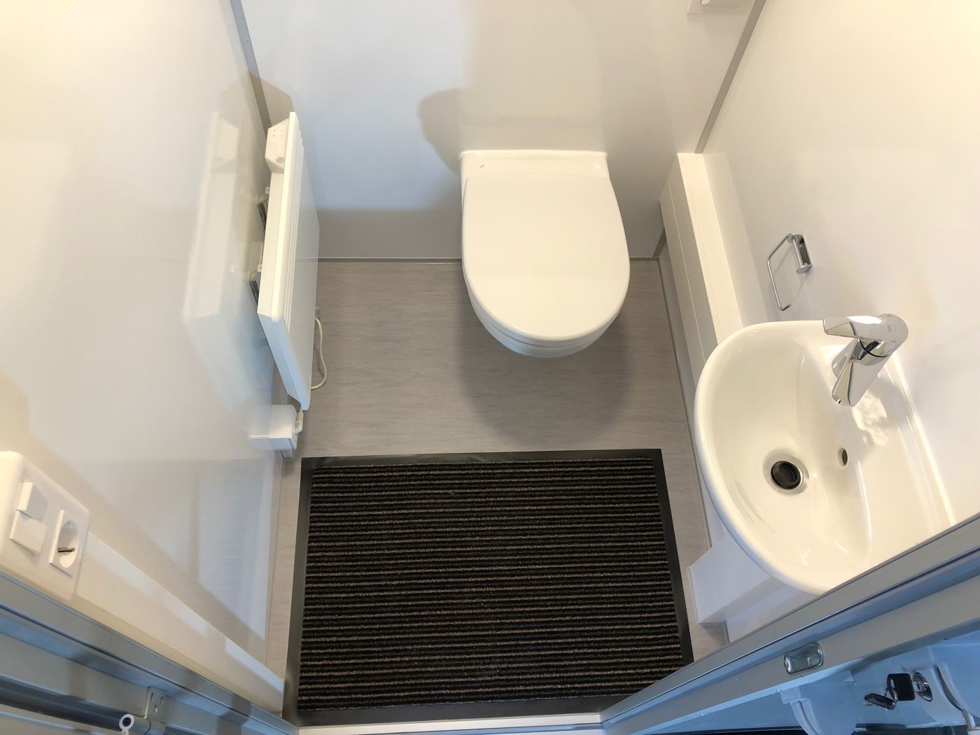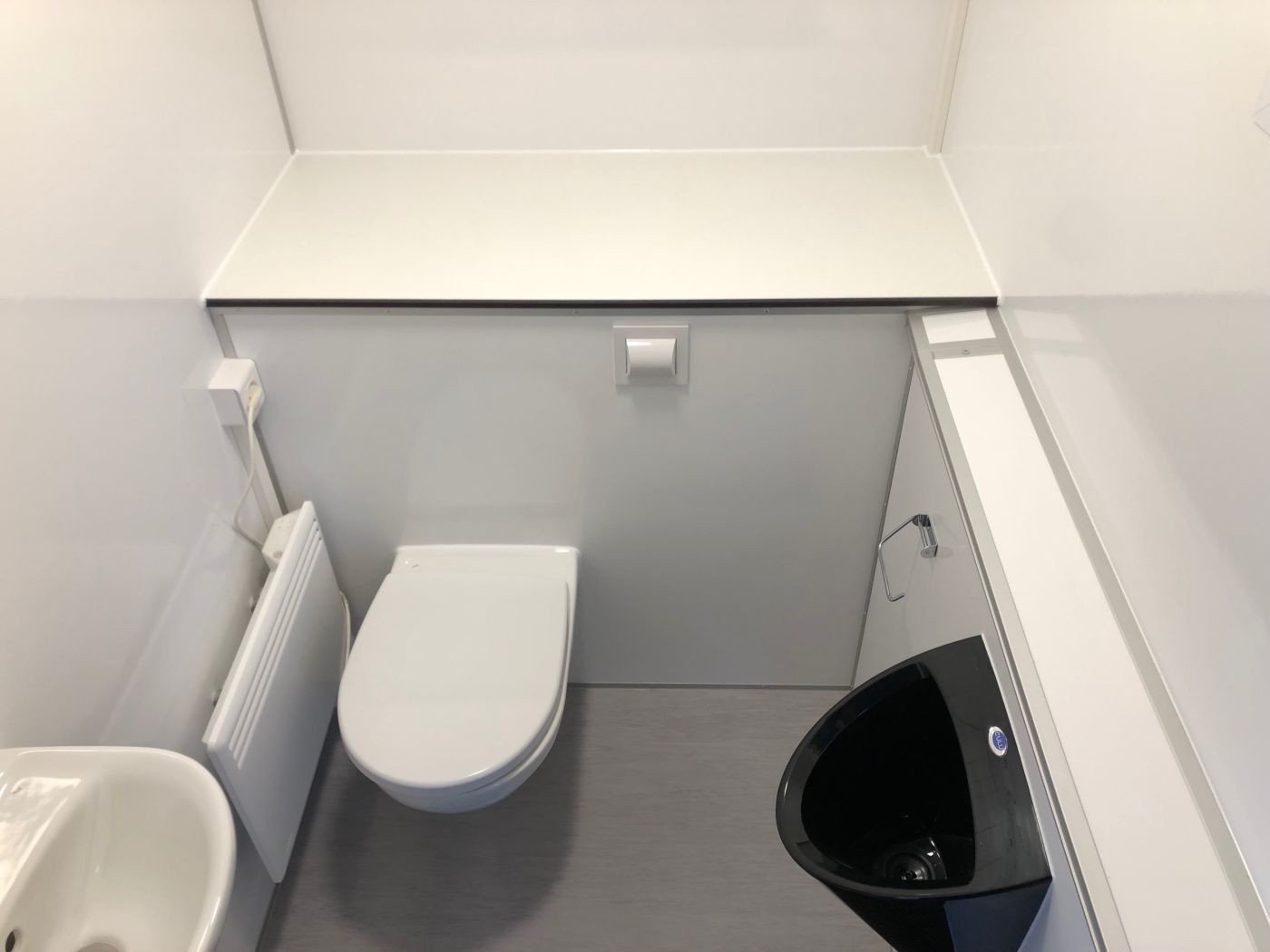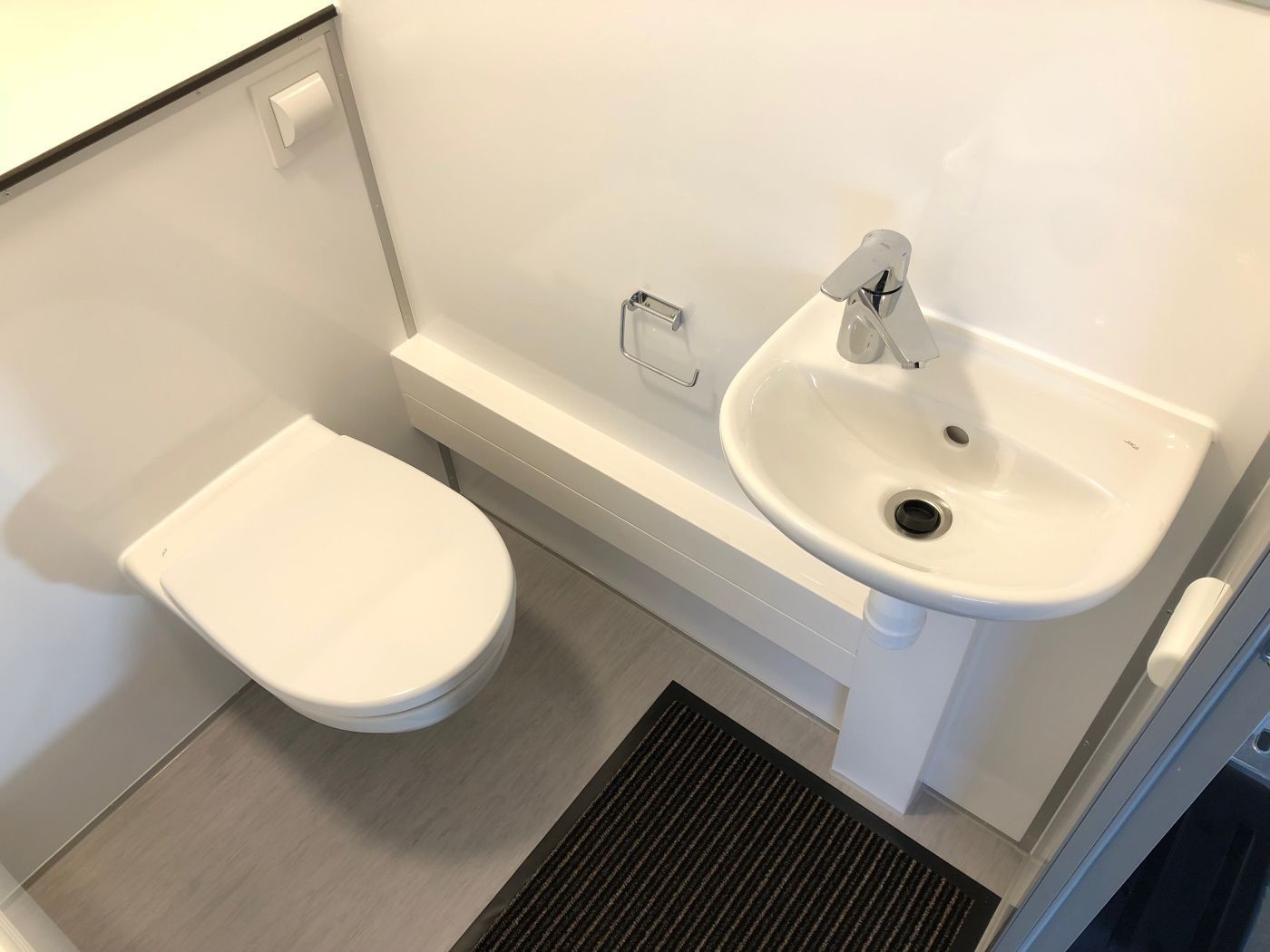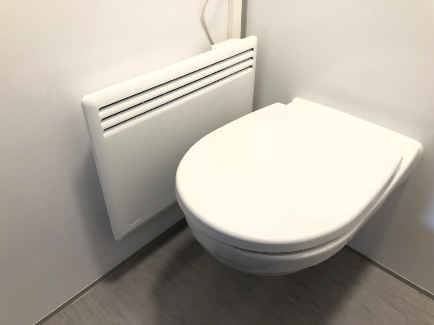 1 WC mit wasserspülender, wandaufgehängter Toilette