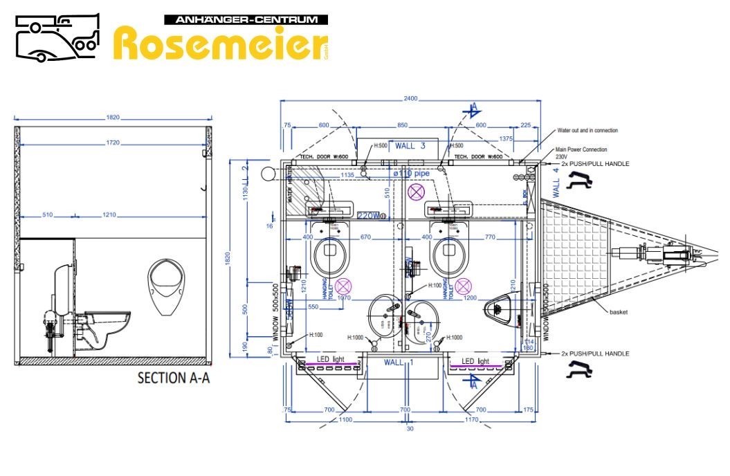 Toilettenanhänger 1 x Damen WC, 1 x Herren + 1 x Urinal
