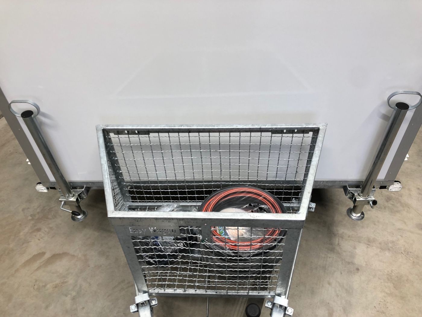 Auf der Deichsel montierter Schlauchkorb ermöglicht den hygienischen Transport benutzter Schläuche