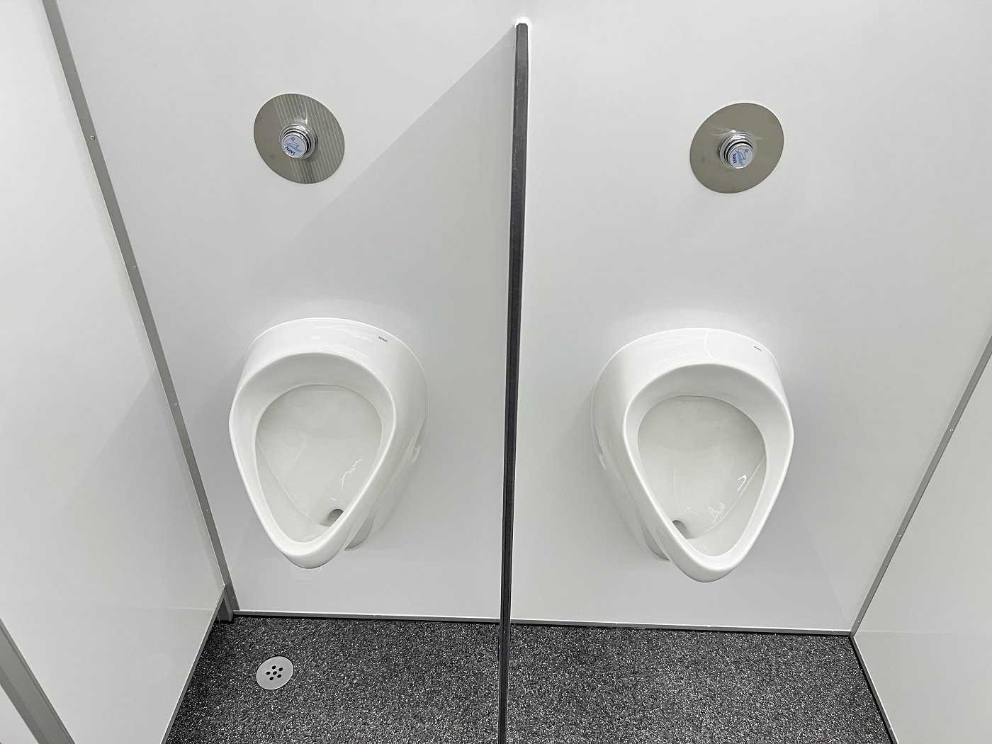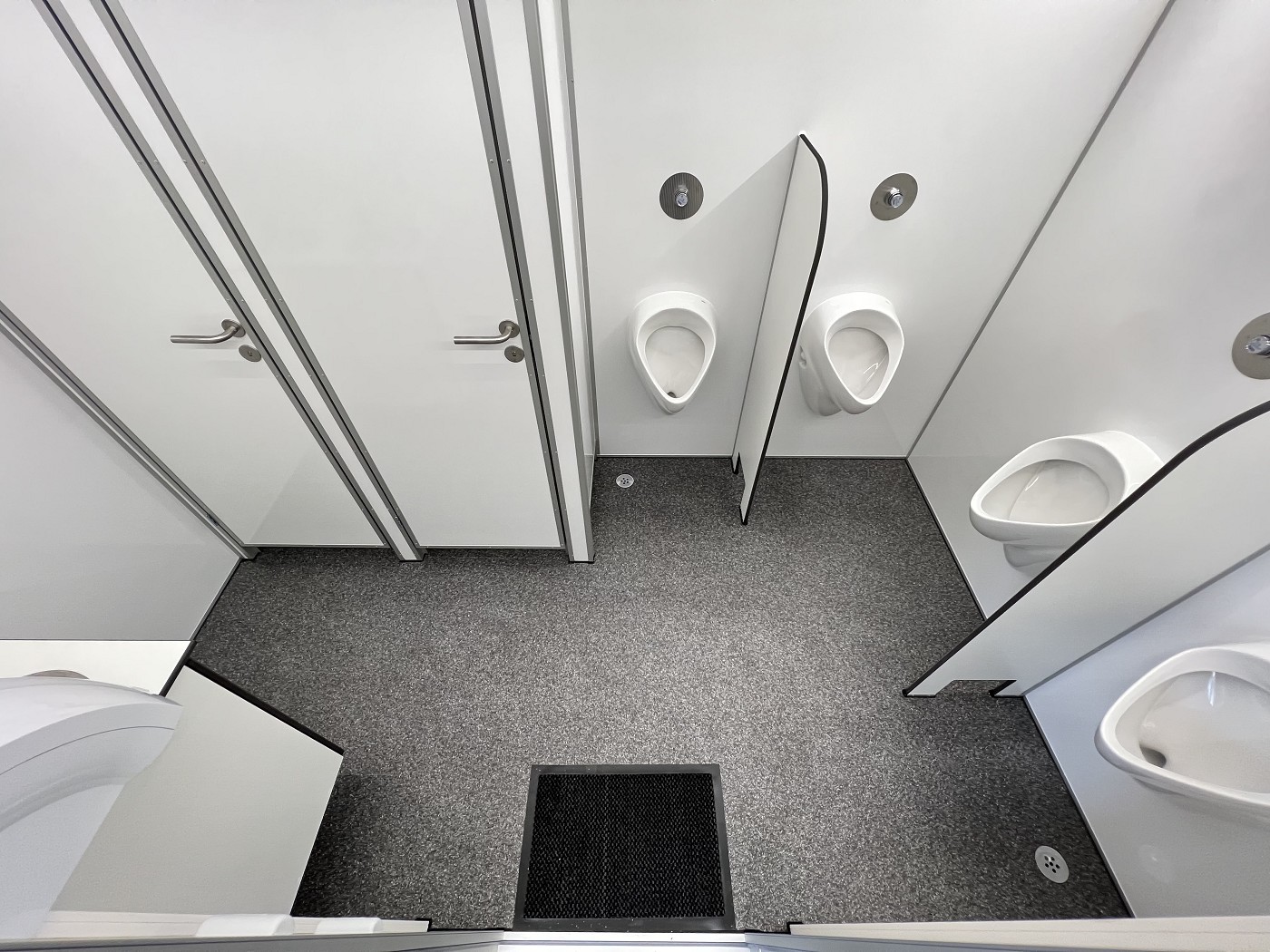 • 4 wasserführende Urinale mit Sichtschutzwänden