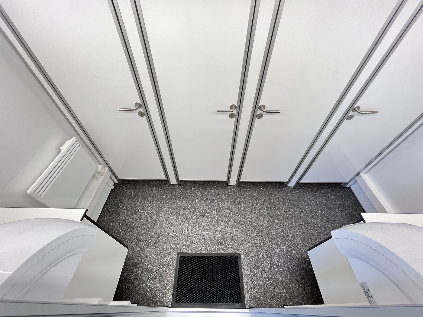 • 4 WC-Kabinen mit wasserspülenden, wandaufgehängten Toiletten