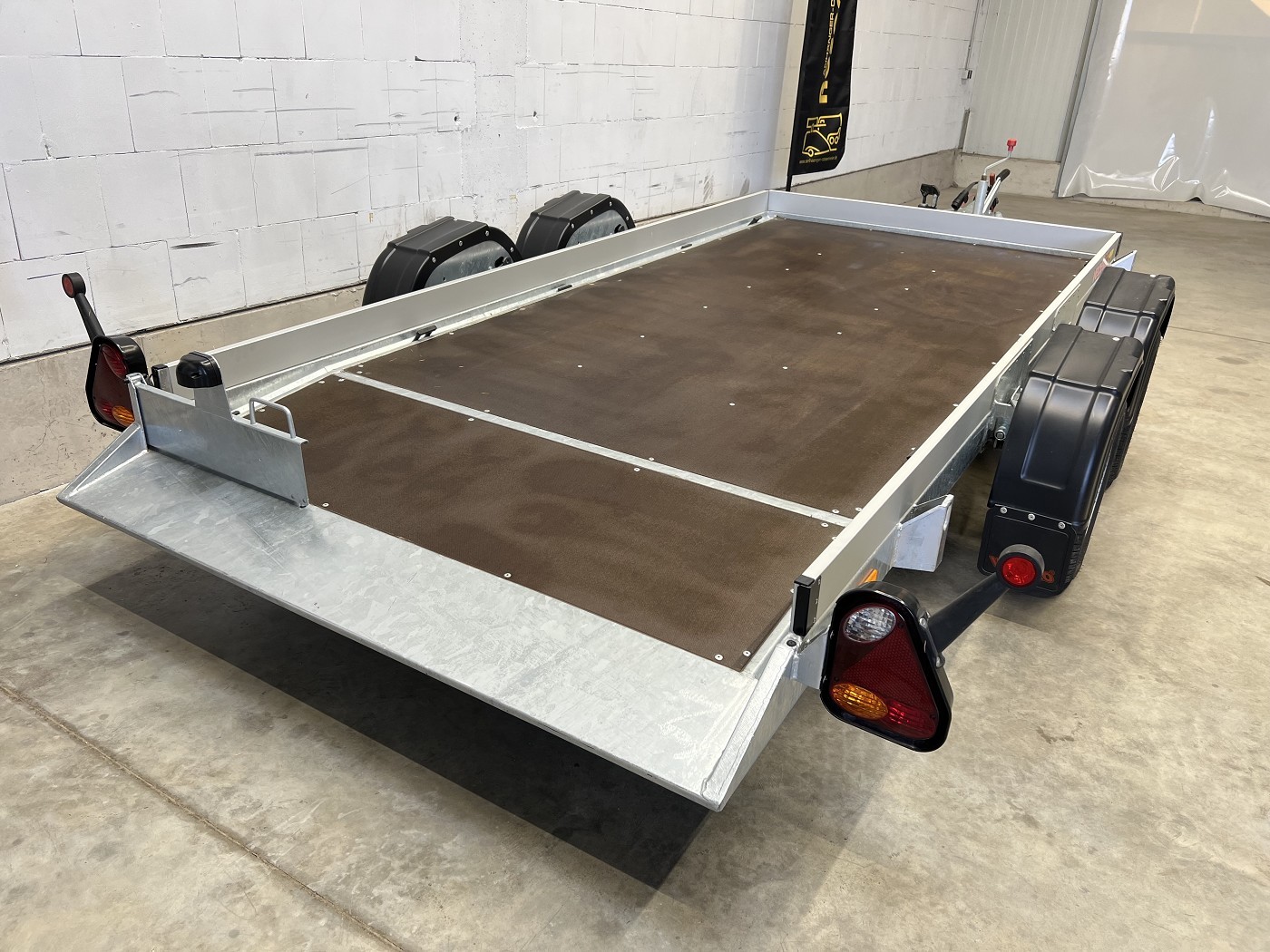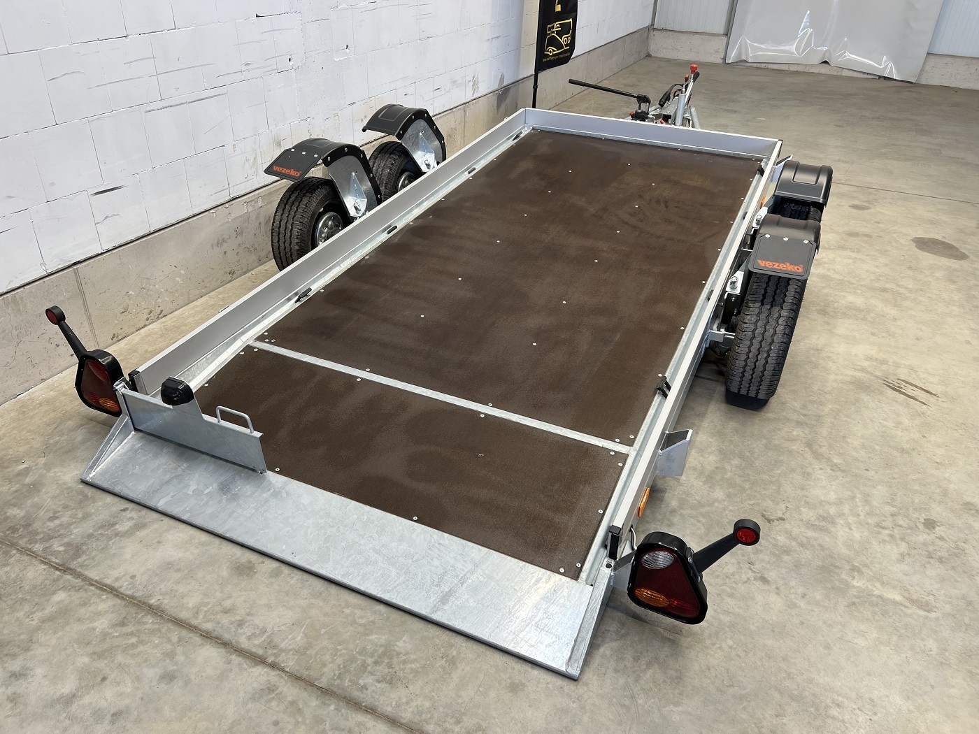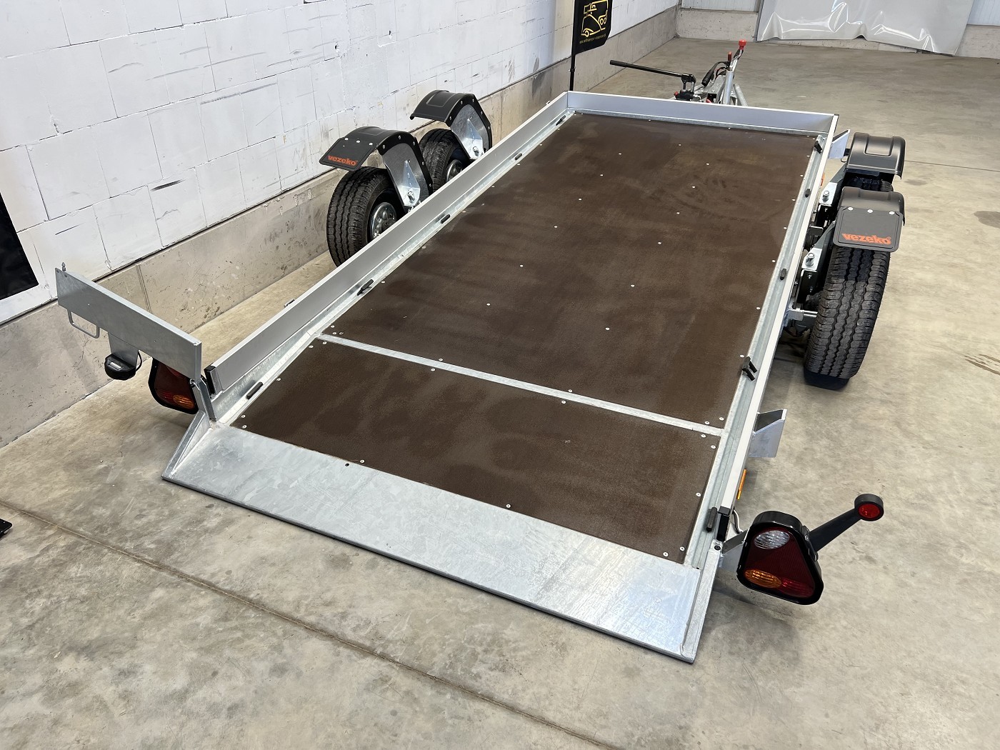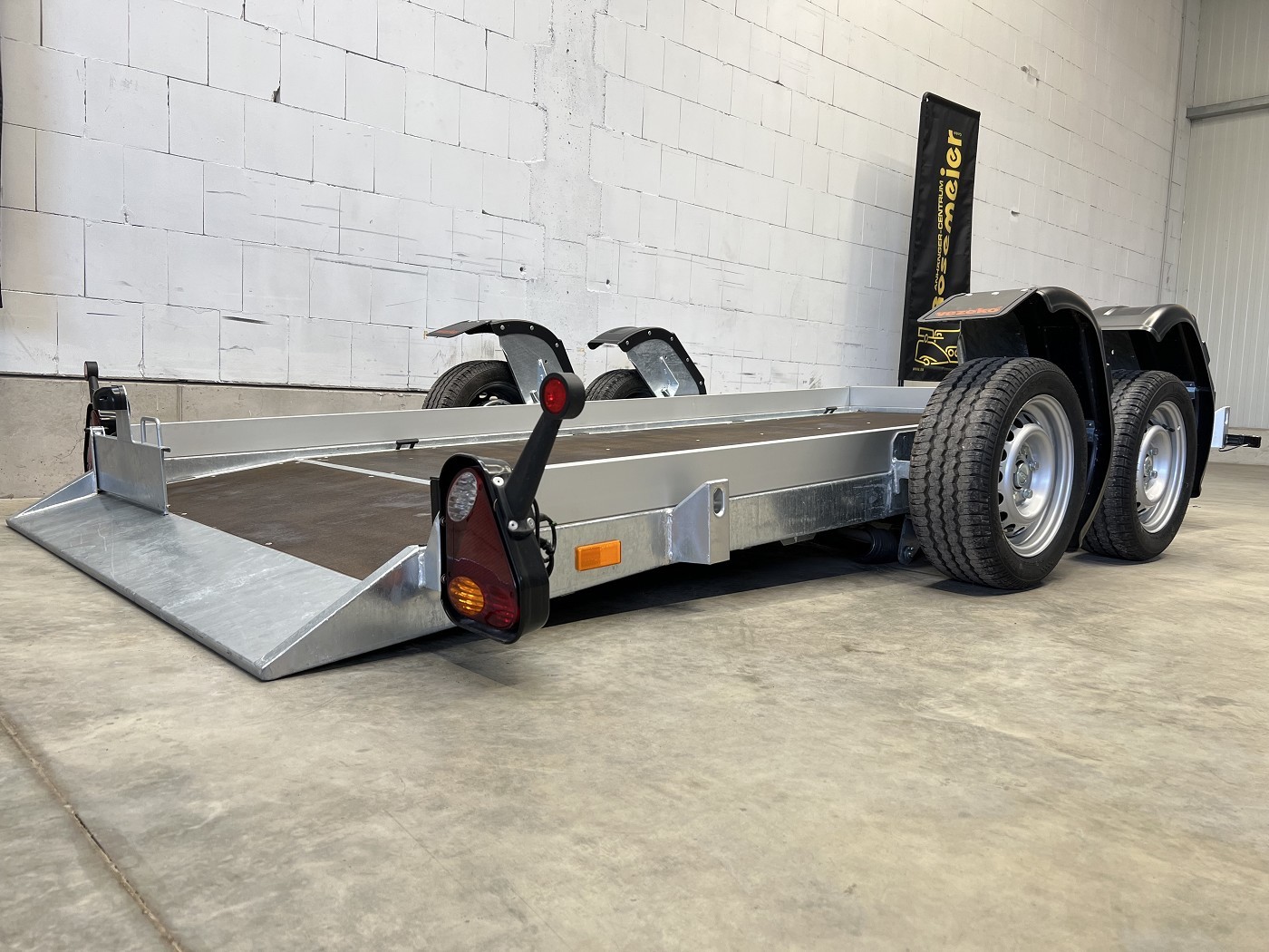 Absenkbarer Universaltransporter ideal zum Transportieren von Scherenbühnen, Motorrädern und anderen Fahrzeugen.