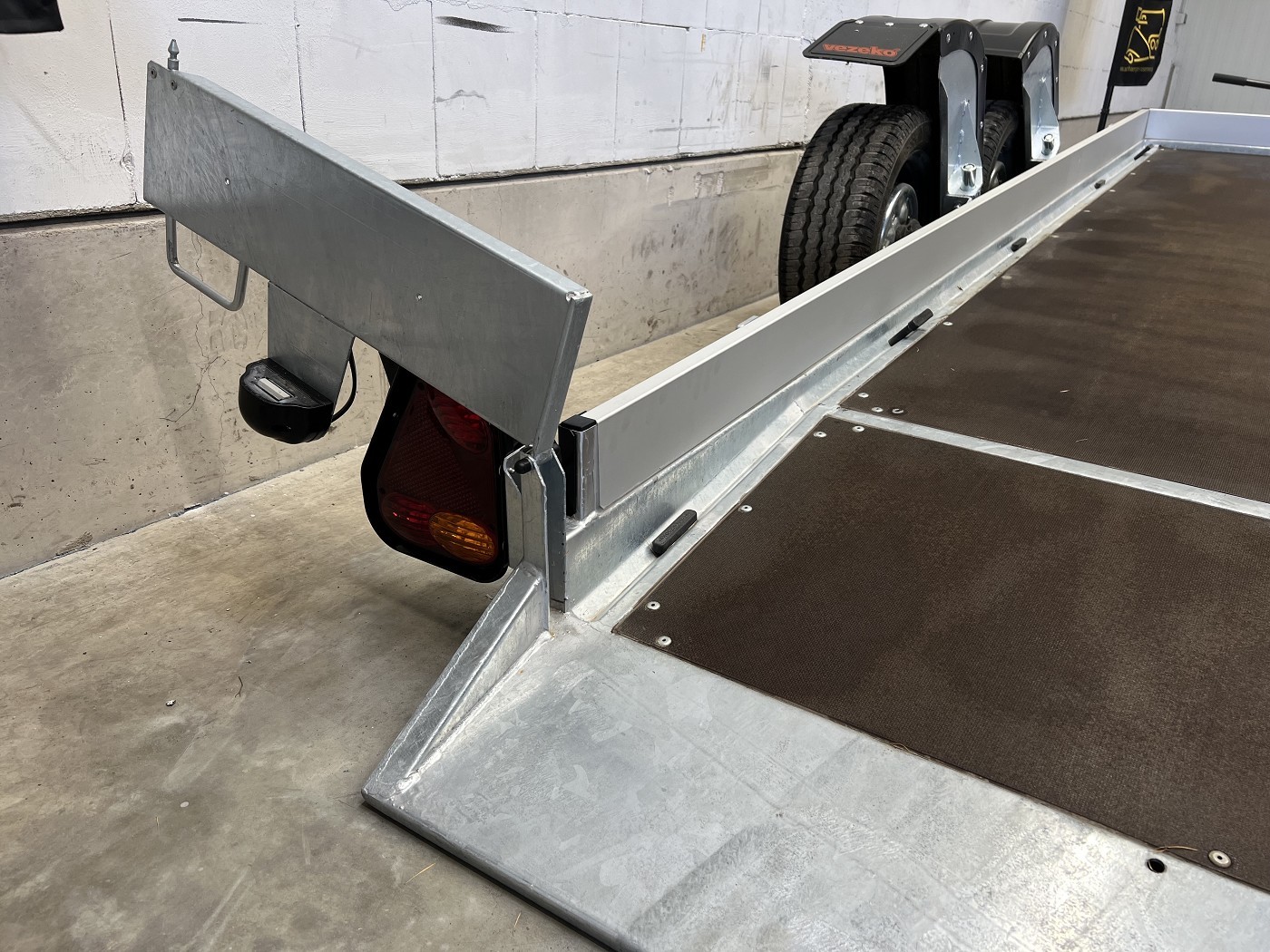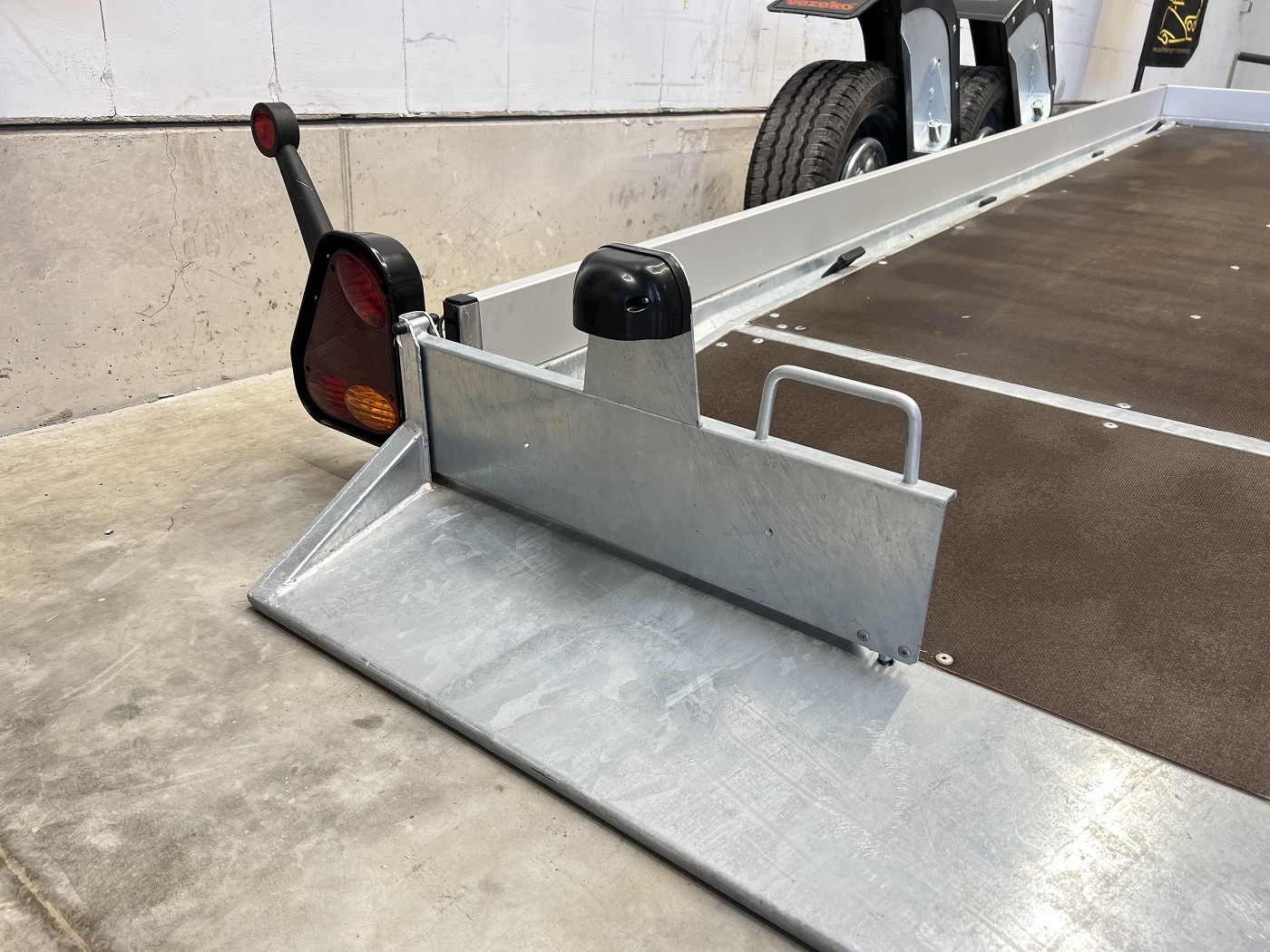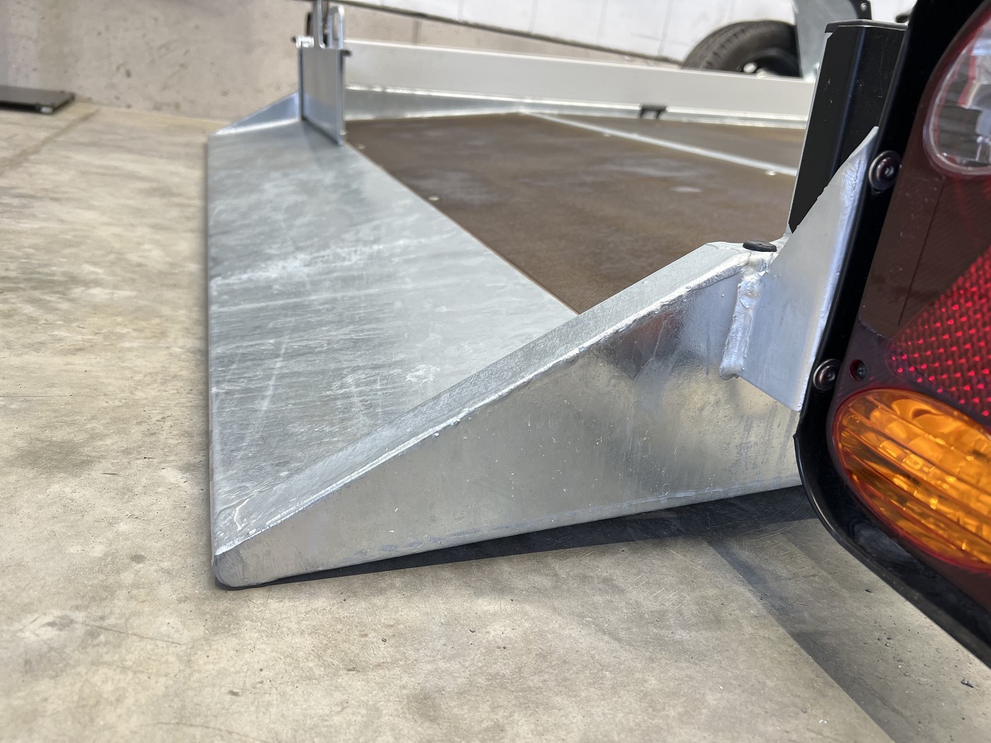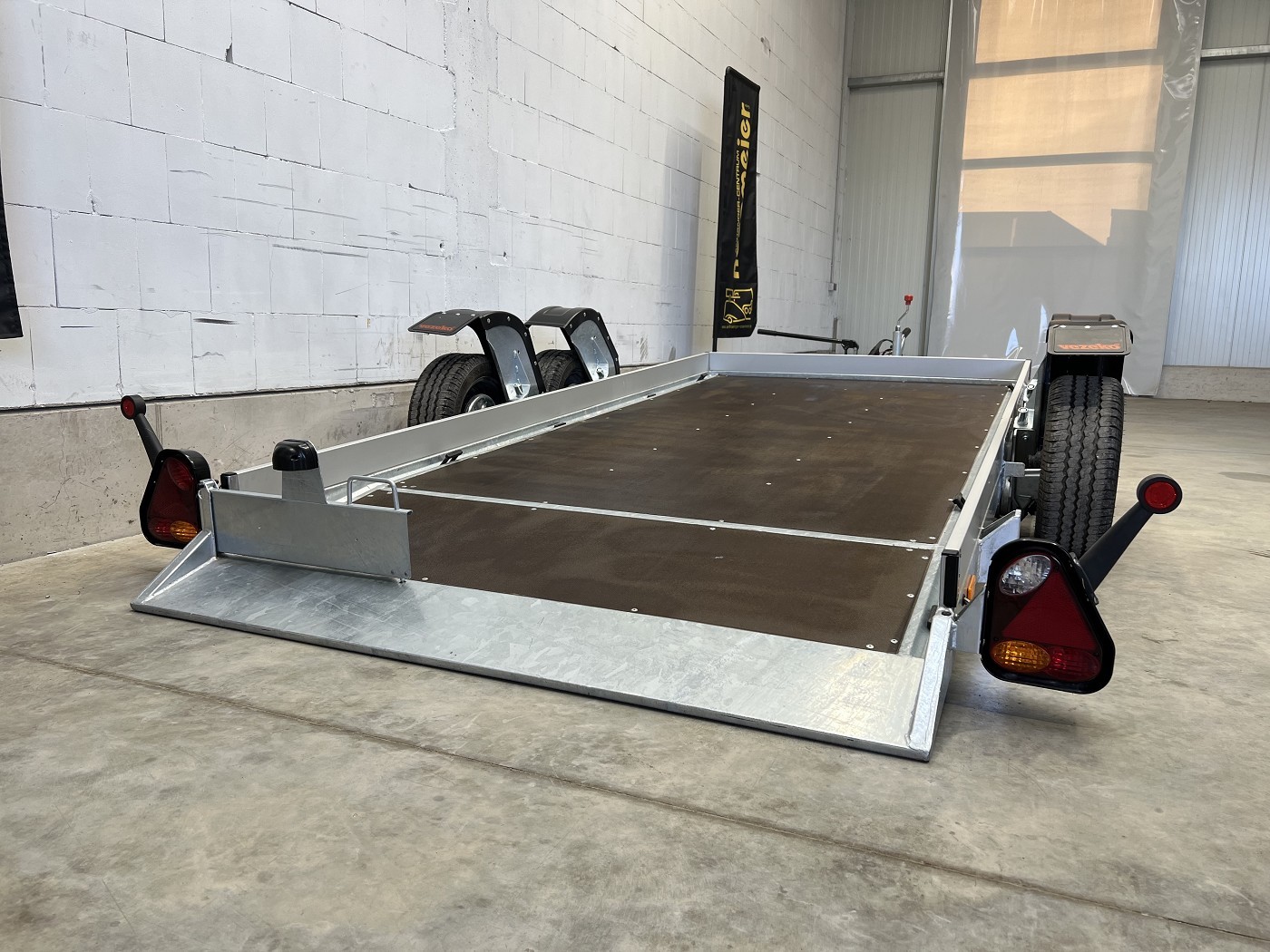 Absenkbarer Universaltransporter ideal zum Transportieren von Scherenbühnen, Motorrädern und anderen Fahrzeugen.